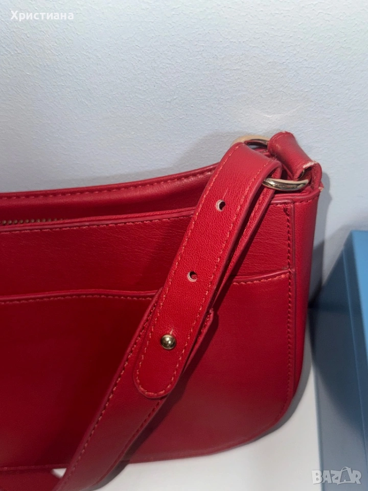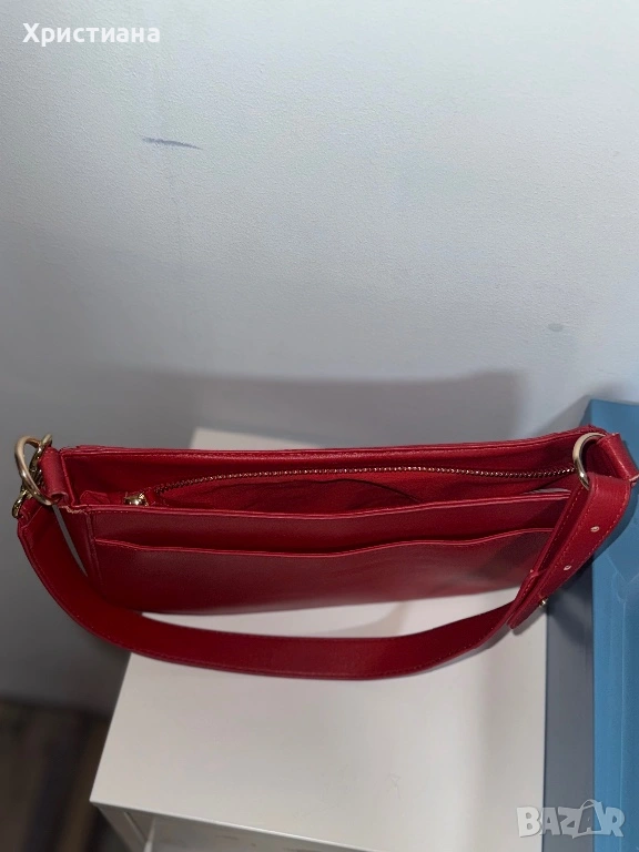 Дамска чанта от изкуствена кожа Expatrié. Носена е, има леки щети по нея( няколко драскотини), всичко е показано на снимките. Пазя дългата дръжка, с която идва. Не пазя кутия/дъстбаг.