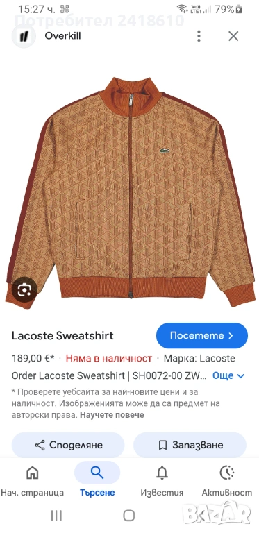 Оригинално мъжко горнище с цял цип , ново!