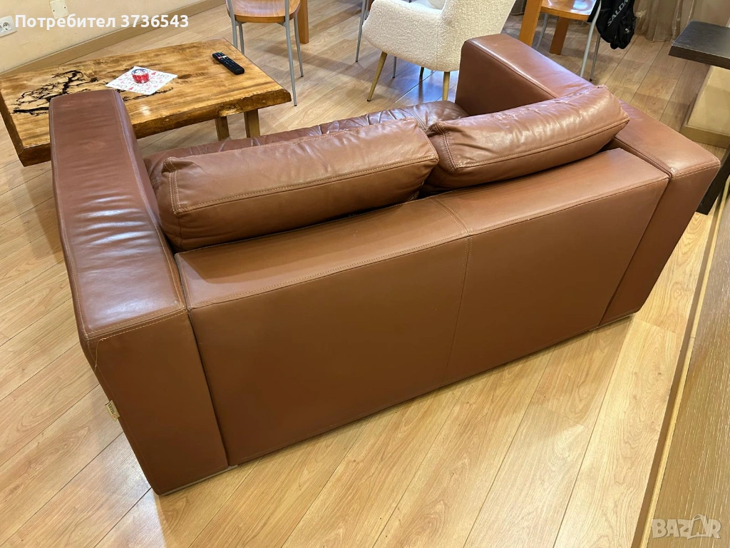 Продавам двуместен кафяв кожен диван (закупен от SELAMORE).