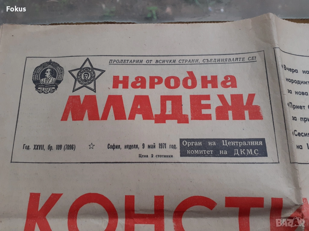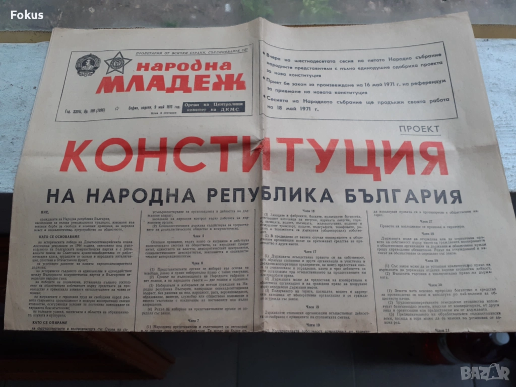 Вестник Народна младеж с конституцията на НРБ от 9 Май 1971 → Обява 53384167