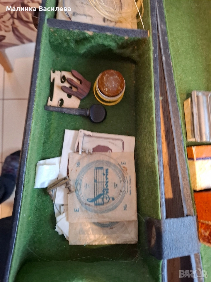Продава се в комплект с калъф, лък, струни и аксесоари – готова за свирене.