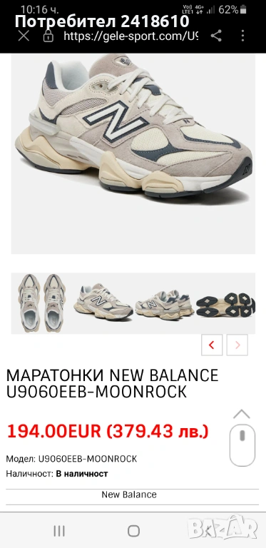 New Balance 9060 MoonRockWomens Size 40/25см UK 6.5 US 7 ОРИГИНАЛ! Дамски Маратонки