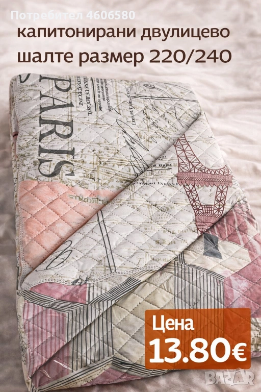 Двулицево капитонирано шалте 220×240 см, снимка 1 - Покривки за легло - 53384854 Двулицево капитонирано шалте 220×240 см, снимка 2 - Покривки за легло - 53384854 Двулицево капитонирано шалте 220×240 см, снимка 3 - Покривки за легло - 53384854 Двулицево капитонирано шалте 220×240 см, снимка 4 - Покривки за легло - 53384854 Двулицево капитонирано шалте 220×240 см, снимка 5 - Покривки за легло - 53384854 Двулицево капитонирано шалте 220×240 см, снимка 6 - Покривки за легло - 53384854 Двулицево капитонирано шалте 220×240 см, снимка 7 - Покривки за легло - 53384854 Двулицево капитонирано шалте 220×240 см, снимка 8 - Покривки за легло - 53384854 Двулицево капитонирано шалте 220×240 см, снимка 9 - Покривки за легло - 53384854 1/9