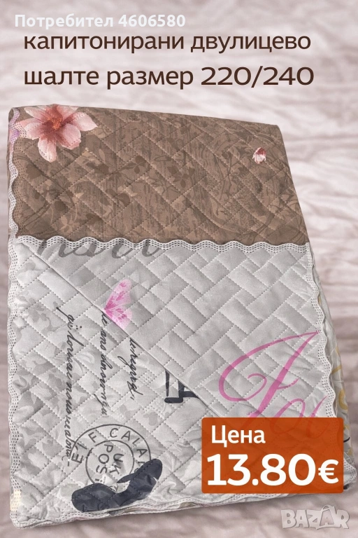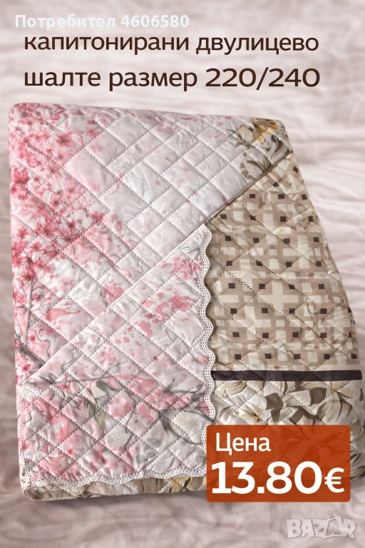 Двулицево капитонирано шалте 220×240 см → Обява 53384854