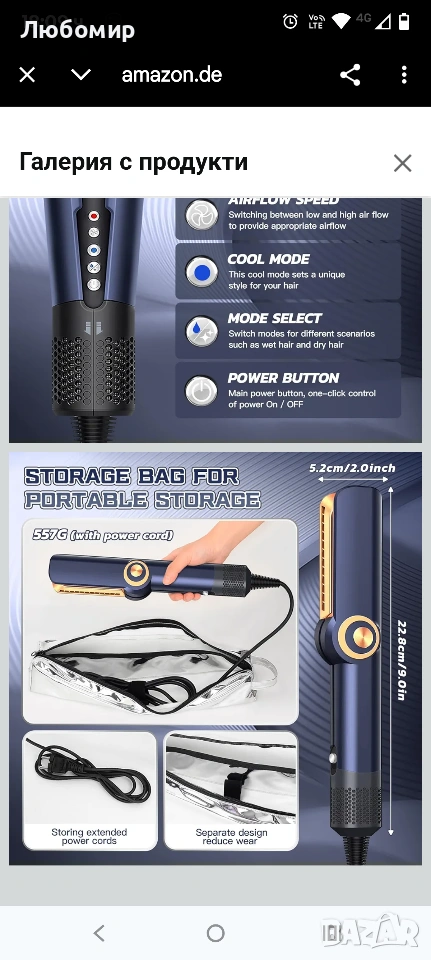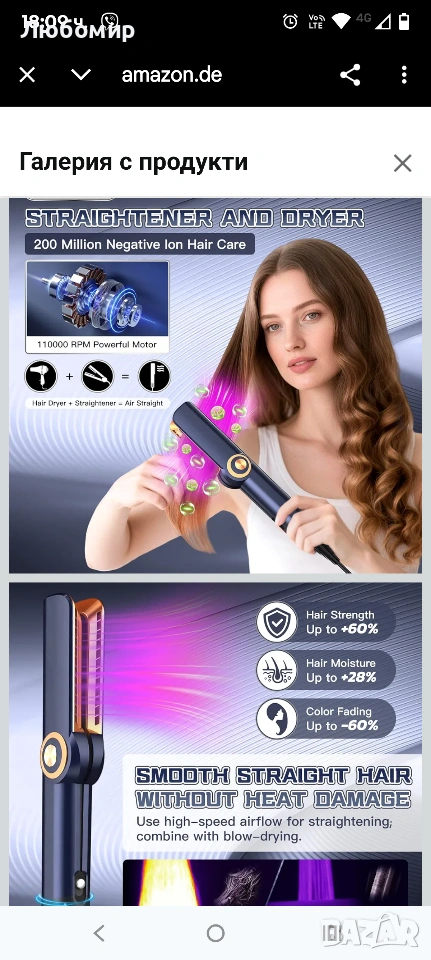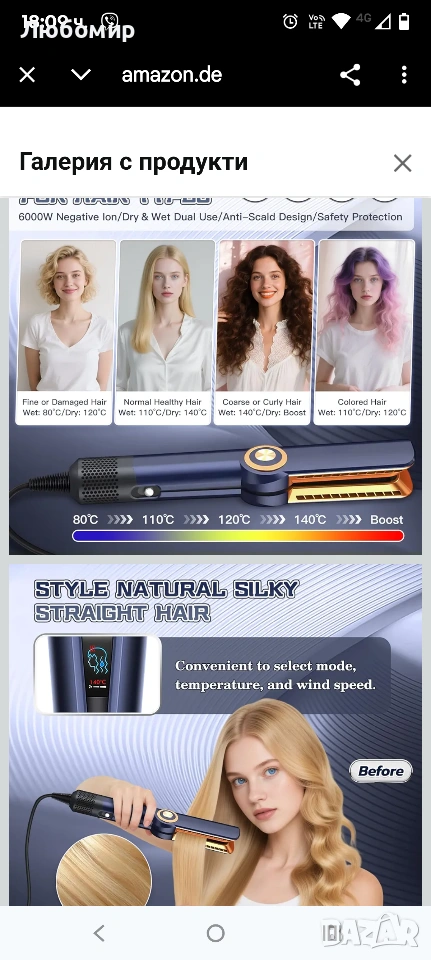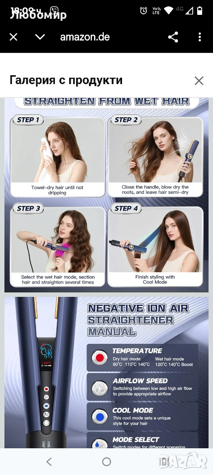 Преса за коса Air Lonen, 2-в-1 преса за коса, Поддържа сушене със сешоар и изправяне, Подходяща за суха и мокра коса, Студен/горещ въздух, 40°C - 200°C, По-малко накъсване на косата, Повече блясък .2 в 1 сешоар и преса за коса: комбинирайки функциите на преса за коса и сешоар, можете да използвате тази преса за коса, тя има интелигентен дизайн за мокра и суха коса. Линейният изход за въздух с насочен въздушен поток помага за едновременно изправяне и изсушаване на косата. МОЛЯ, ОБЪРНЕТЕ ВНИМАНИЕ: Производителността е еквивалентна на тази на сешоар, така че е също толкова шумна, колкото сешоар.