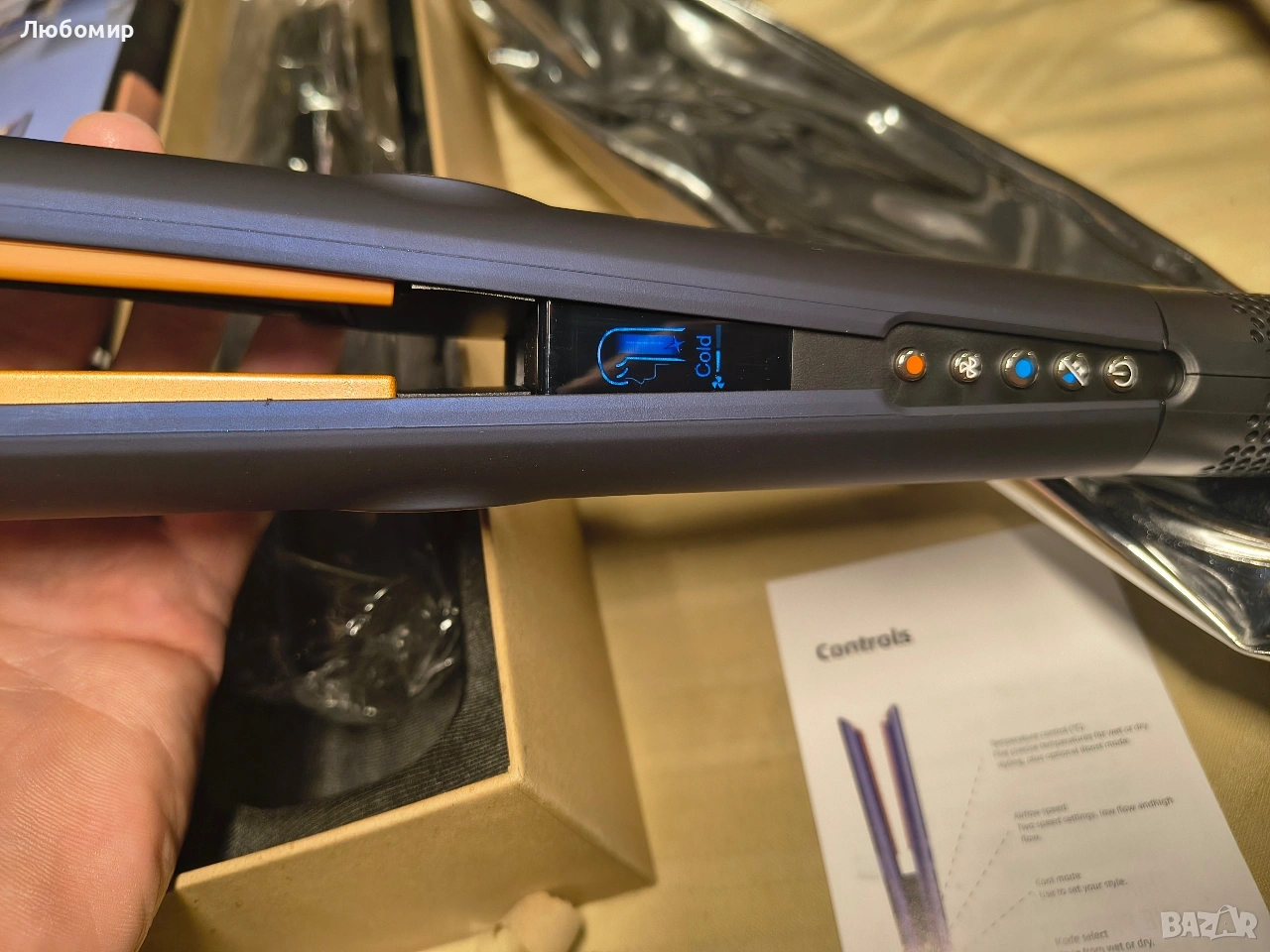 Без нагревателни плочи, бърз въздушен поток за изправяне: не използвайте традиционни нагревателни плочи и високи температури, а използвайте нашата технология за бърз въздушен поток за ефективно изправяне на косата без екстремно увреждане от топлината. Идеална за нежна грижа за косата. Насладете се на по-ефективни резултати, както в салон, и спестете време. (Препоръчително е да нанесете масло за коса преди употреба.)