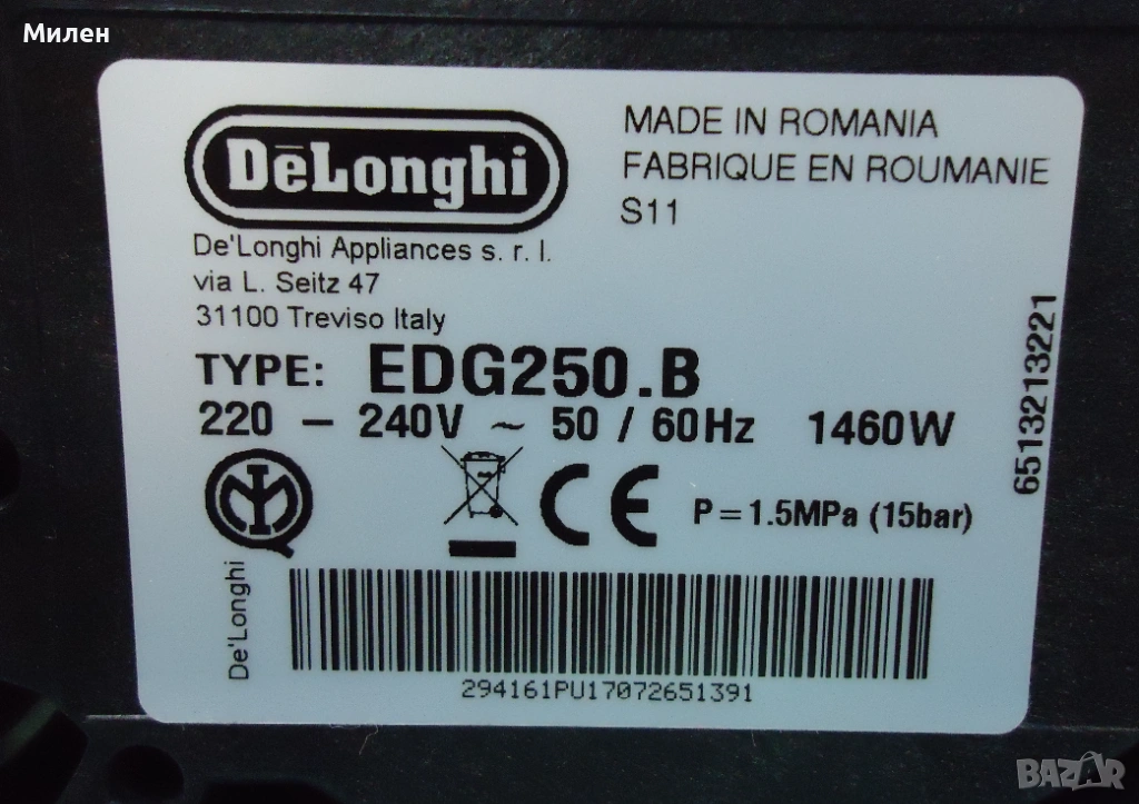 Продавам кафемашина с капсули Dolce Gusto марка Delonghi mod. EDG 250.B /JOVIA/ с гаранция 1 /една/ година.
