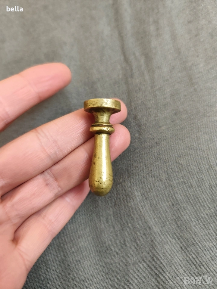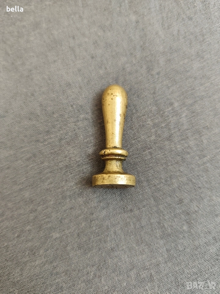Антикварен бронзов сигнет – Колекционерски печат с монограм Предлагам автентичен бронзов сигнет (личен печат) от края на XIX век. Изключителен екземпляр с историческа стойност, съхранил духа на епохата и майсторството на старите гравьори. Виртуозно врязан калиграфски монограм с преплетени инициали. Огледално гравиран за прецизен релефен отпечатък.Масивен лят бронз с автентична благородна патина, недокосната от съвременни абразиви. Предметът е служил за херметично запечатване на официална и частна кореспонденция чрез горещ восък/лак. Гарантирал е неприкосновеността на писмата и е служил като личен идентификатор на притежателя.Ергономична форма и солидно тегло – характерни за високия клас антикварни канцеларски пособия. Подходящ както за ползване така и за попълване на частни колекции или като престижен аксесоар за бюро.Цена 70 евро