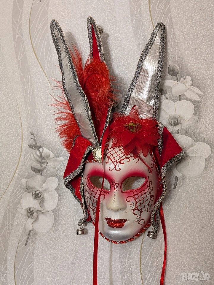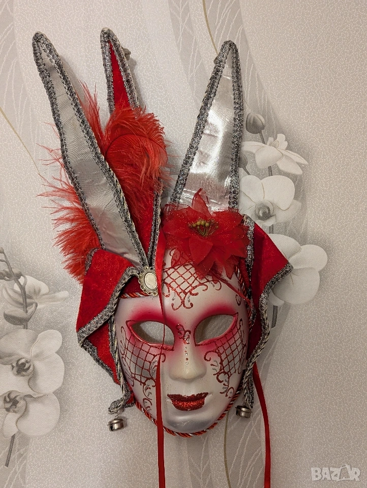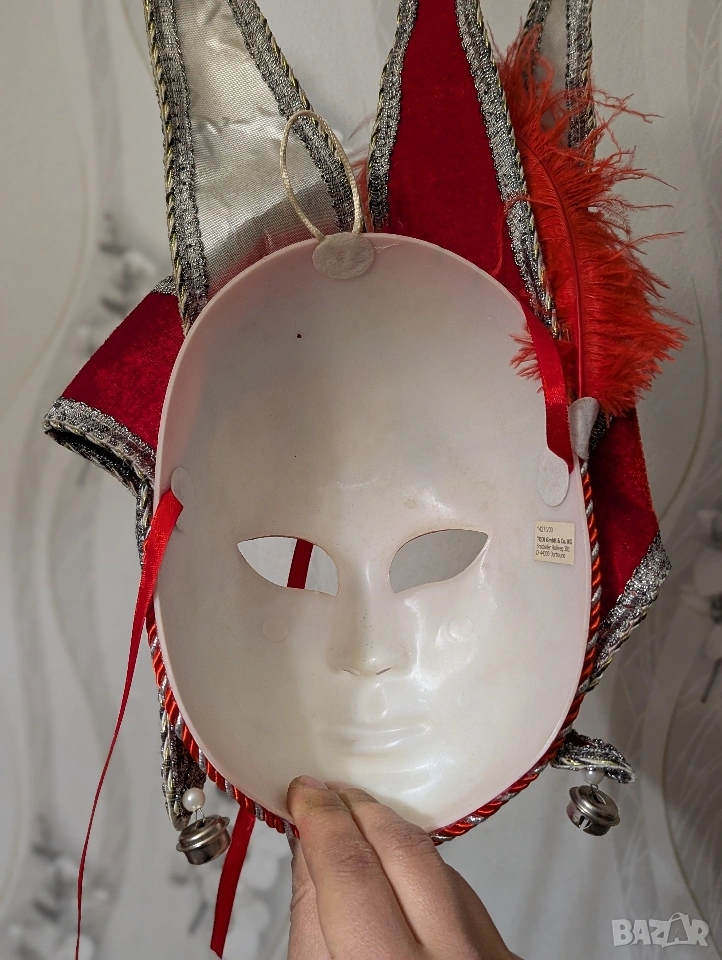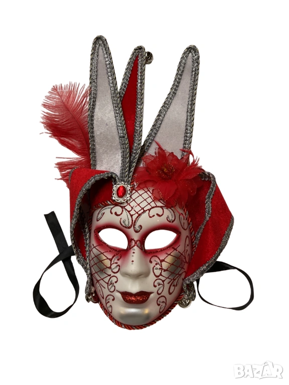 Разкрийте дивата си страна с маската за лице „Червена глава на шут“! Перфектна за сезона на Марди Гра, тази маска добавя смел щрих към всяко облекло. Поемете риск и се откроете от тълпата с този смел и авантюристичен аксесоар. Давайте, бъдете шутът на партито!