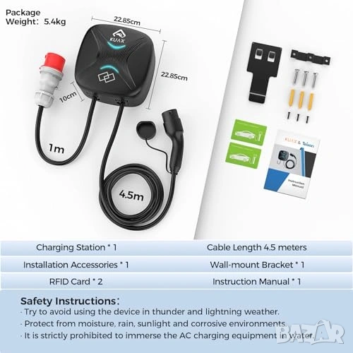 KUAX 11kW Wallbox – интелигентна зарядна станция за електромобили, подходяща за домашен и професионален монтаж.