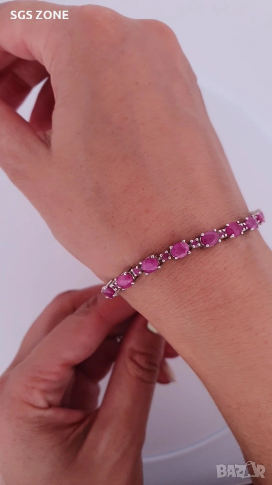 Сребърна гривна с нежен розов рубин от Тайланд. Универсален размер. Още снимки и видеа на продукта в Instagram и Facebook sgs.zone, уебсайт sgs.zone. Можем да изпратим допълнителна информация чрез Viber. Изпращане Speedy и Эконт. Шоурум в София, Дондуков, 53. Всички продукти са със сертификати и подаръчна кутия. Продукти имат допълнителни български маркировки