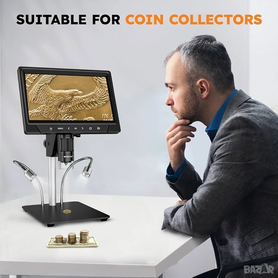 дигитален микроскоп, микроскоп за запояване, нумизматика, микроскоп с екран, BEBANG, ремонт на електроника, увеличение 1200x, инспекция на платки, професионален микроскоп, HD камера.