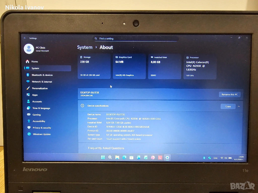 Lenovo ThinkPad e11 11.6 inch | Intel Celeron N2930 4x2.16 Ghz|8GB RAM|256GB SSD |Windows 11| laptop → Обява 53385812