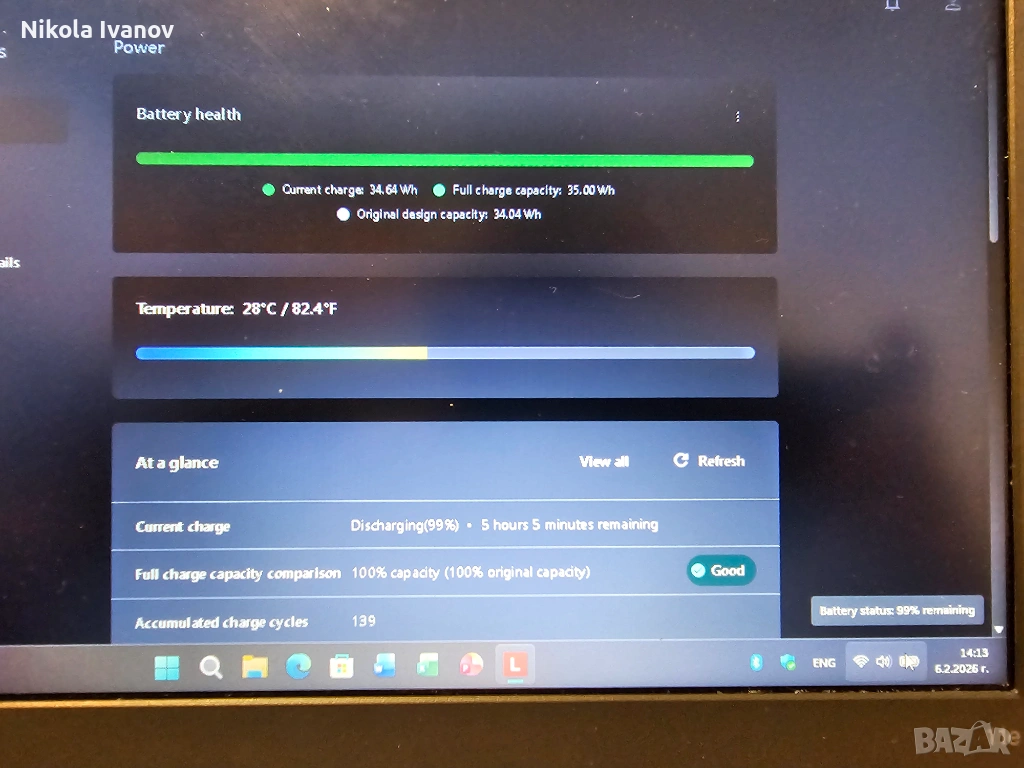 - Батерия - 100% Живот на 139 цикъла 35Wh (издържа около 3 часа според натоварването)
