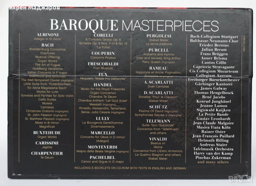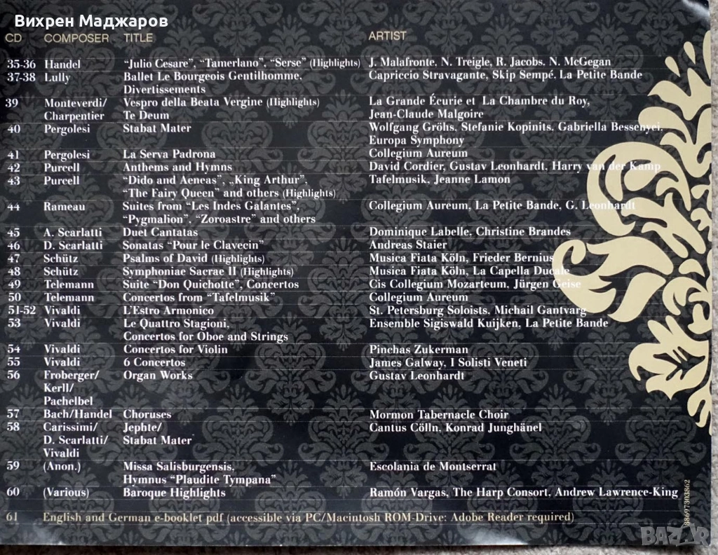 Продавам колекция Baroque Masterpieces – 60 CD с подбрани произведения на Бах, Хендел, Вивалди, Пърсел, Телеман и други