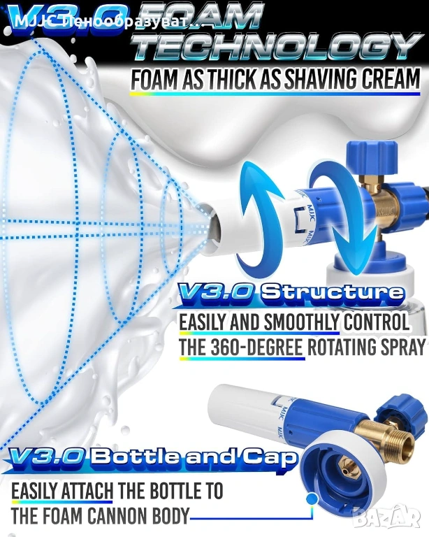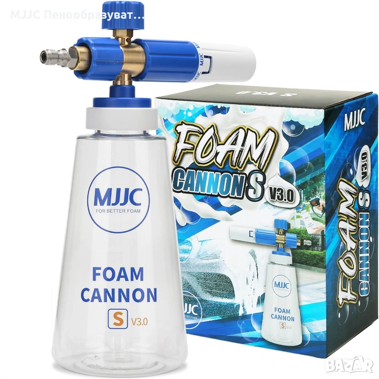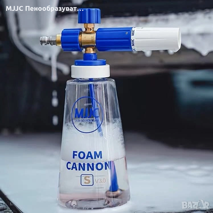 Оригинален MJJC Foam Cannon S V3.0 – професионален пенообразувател за гъста и залепваща пяна, подходящ за почти всички марки водоструйки. Създава плътна пяна, която омекотява замърсяванията и предпазва боята от надраскване. Идеален за измиване на автомобили, мотори, джипове и техника у дома или в сервиза.