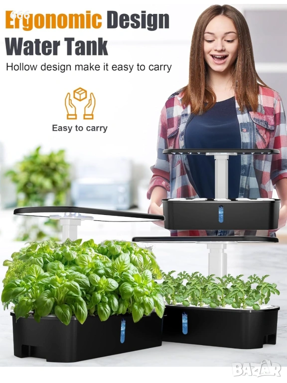 【Ергономична интелигентна градинска система】Благодарение на кухия дизайн на двете страни на резервоара за вода, тази вътрешна билкова градина с лампа за отглеждане е супер лесна за носене, когато трябва да смените водата или да я преместите. Перфектен градинарски подарък за всички възрасти: Няма нужда от градинарски палец с хидропоника – всеки може да отглежда растения с това, защото всичко, което трябва да направите, е да го включите, да добавите вода, да засадите и да съберете реколтата.