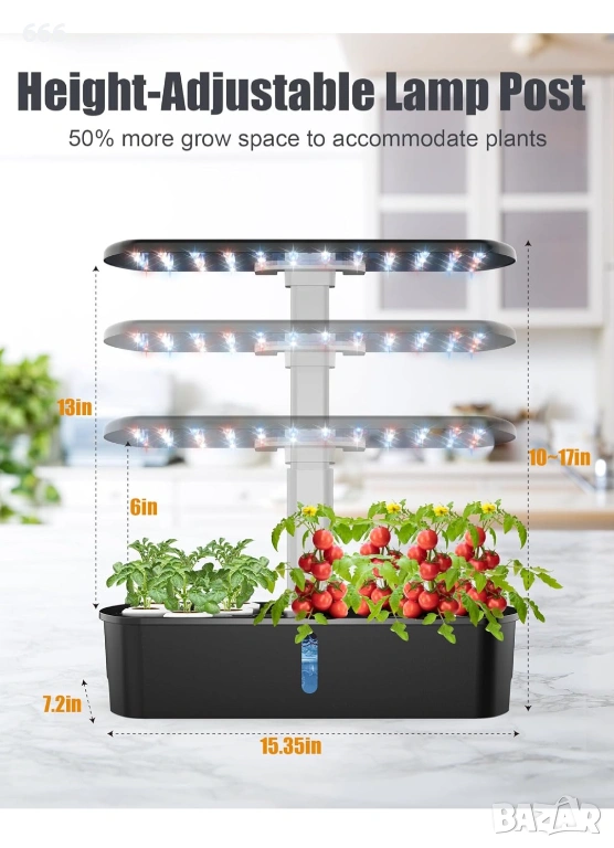 【2 режима на отглеждане】Тази вътрешна хидропонна билкова градина предлага 2 режима на отглеждане, включително режим за зеленчуци и режим за цветя и плодове. Персонализирайте отглеждането си, за да отговорите на уникалните нужди на вашите растения и да гарантирате, че те ще процъфтяват. Можете също така да регулирате височината, за да пасне на вашите растящи растения.