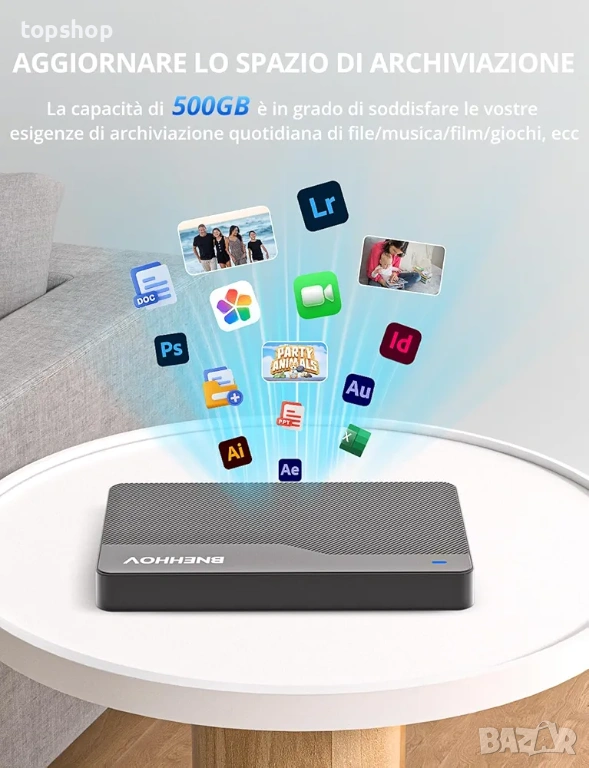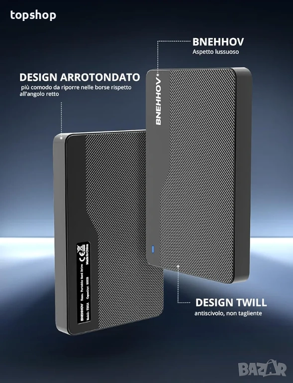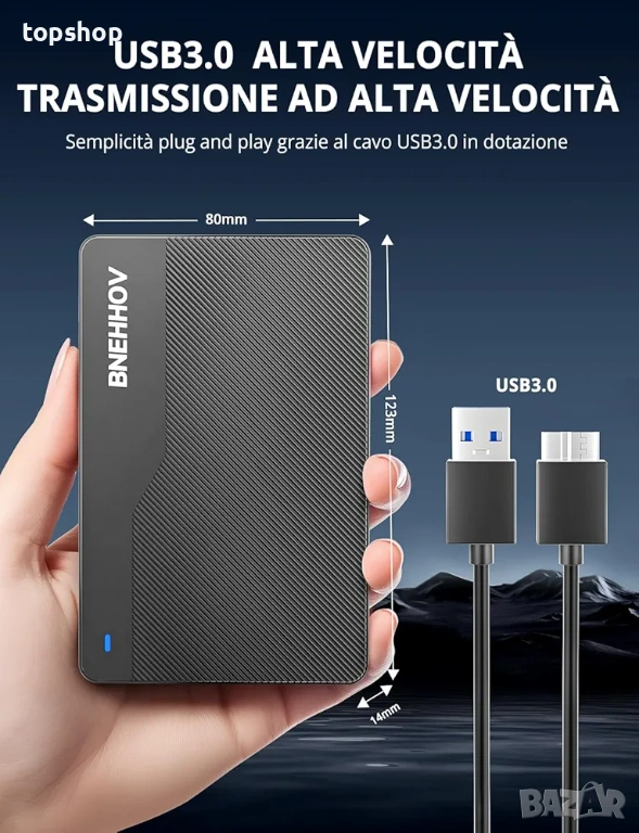 Продавам чисто нов външен твърд диск на марката BNEHHOV. Дискът е с капацитет 500GB и е ултра тънък модел (2.5 инча). Изключително бърз и надежден за съхранение на информация.