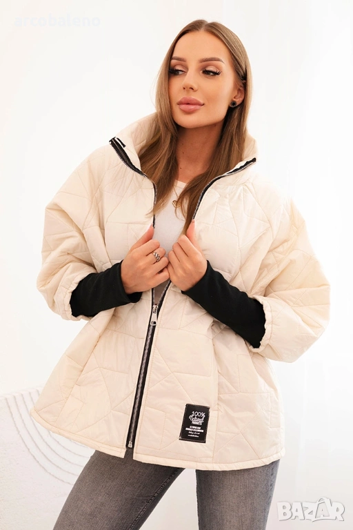 Модерно ватирано дамско яке с по-къса кройка е задължително за по-хладните дни. Удобната яка предпазва врата от вятъра, а ципът осигурява бързо и лесно закопчаване. Ватираната материя не само изглежда страхотно, но и осигурява добра изолация.