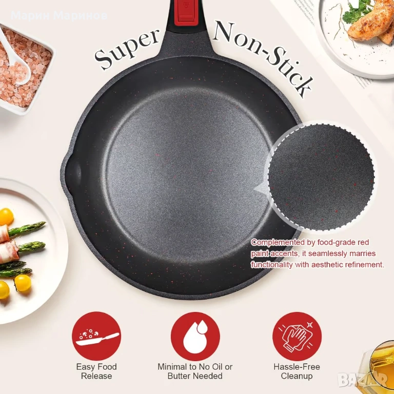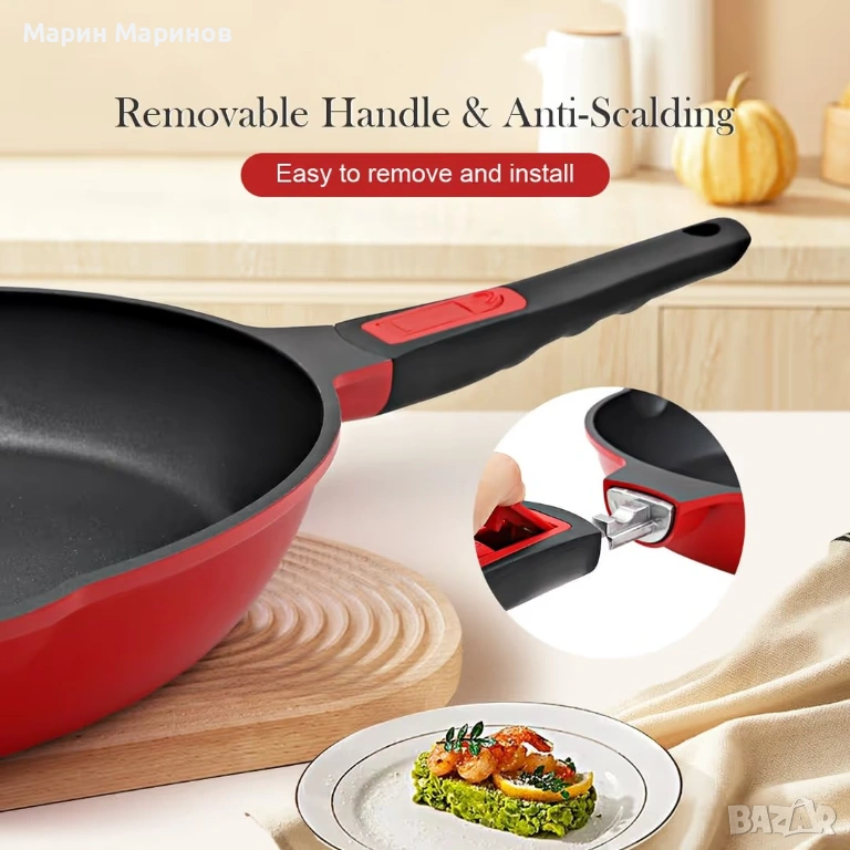 см незалепващ тиган с подвижна дръжка – червено-черен → Обява 53386356
