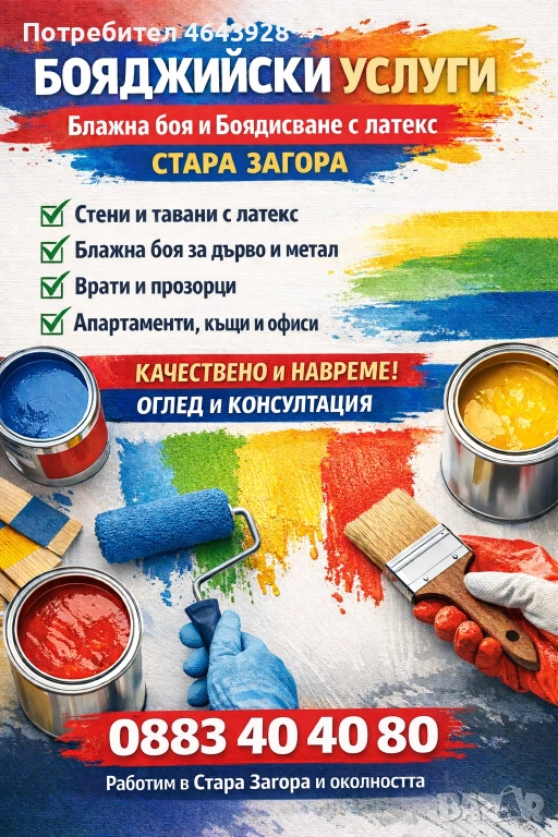 Бояджийски услуги Стара Загора → Обява 53386673