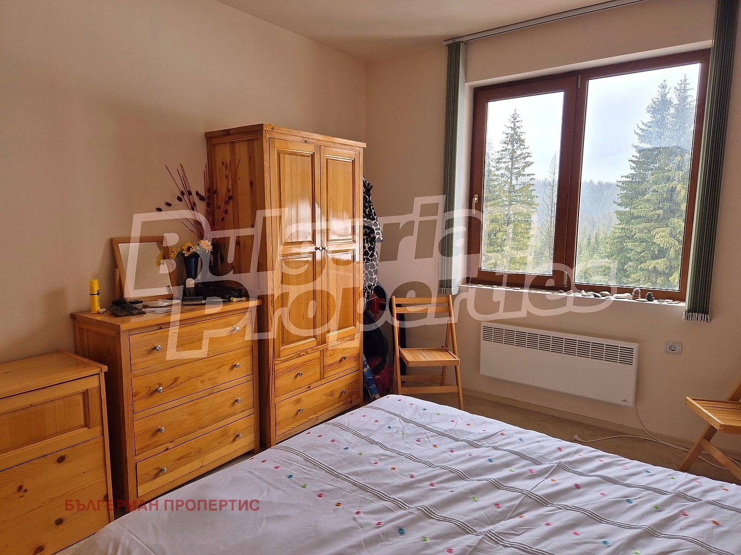 Имотът се предлага напълно обзаведен и оборудван, готов за ползване. Отоплението е решено с електрически конвекторни радиатори, което гарантира топлина и комфорт през зимните месеци. Състоянието на апартамента е много добро, поддържан с внимание и грижа.