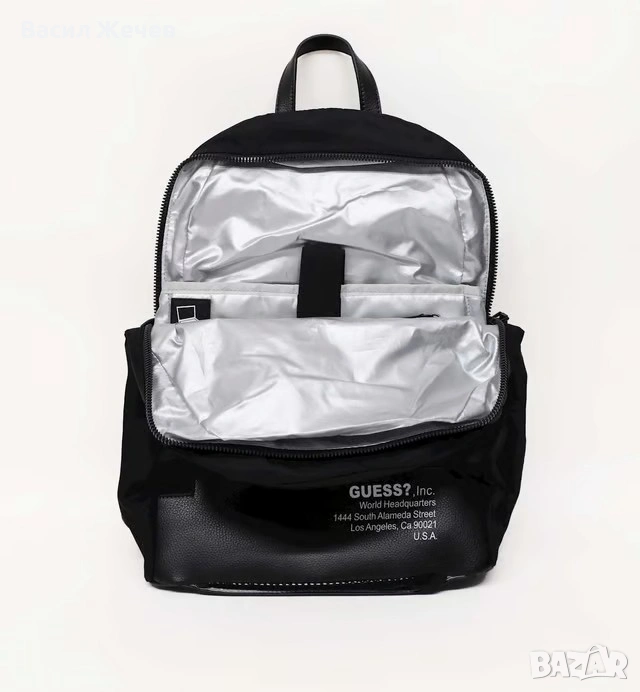 Стилна и практична раница Guess, подходяща за ежедневие, работа, пътуване и градска среда. Моделът е в класически черен цвят, с модерен дизайн и удобно разпределение.