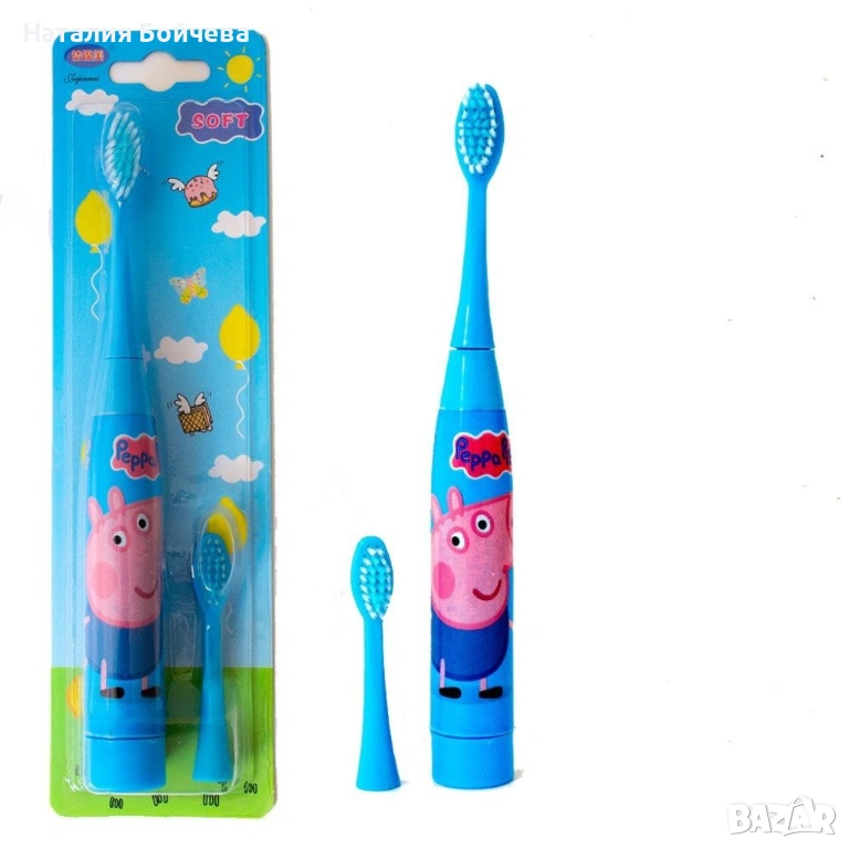 Детска електрическа ултразвукова четка за зъби + допълнителен накрайник - св. розов Пепа Пиг / Тъмно → Обява 53387396