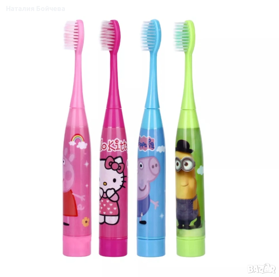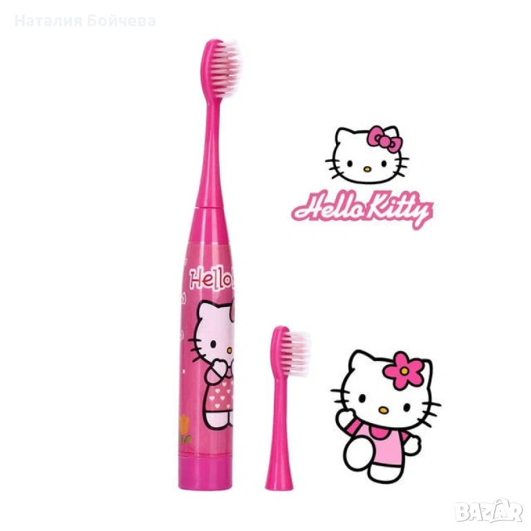 Детска електрическа ултразвукова четка за зъби + допълнителен накрайник - св. розов Пепа Пиг / Тъмно розов Kitty/ Захранвана -1 Х АА батерии (не са включени);