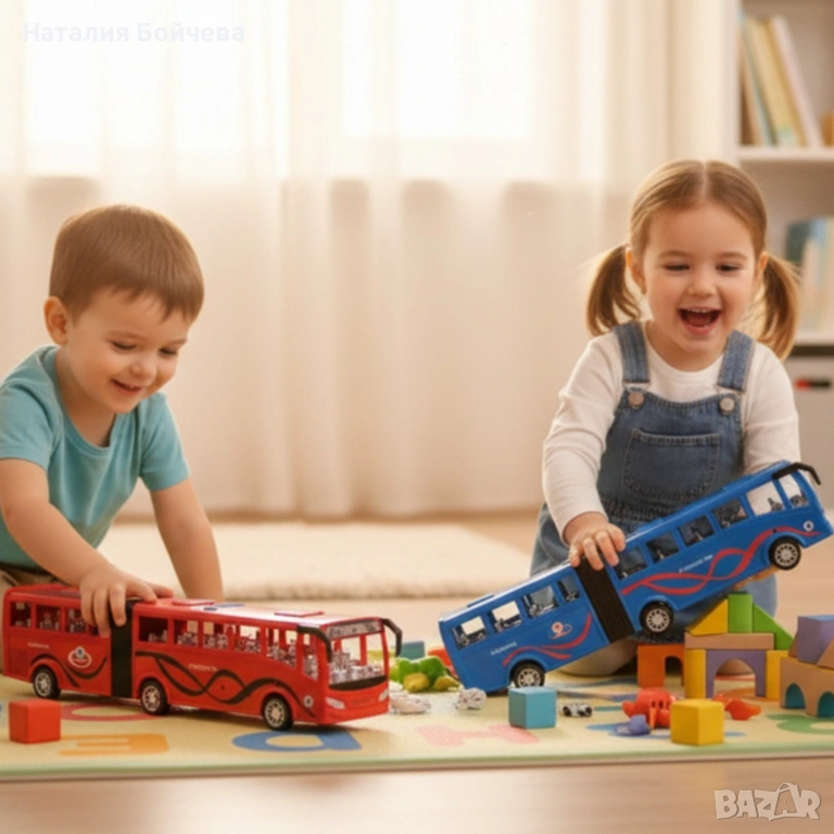 Играчките често омръзват бързо, защото не предлагат движение и реализъм. Inertia Luxury Bus решава този проблем с инерционно задвижване – само едно побутване и автобусът потегля сам! Така детето се забавлява активно, развива координацията си и се потапя в играта като истински шофьор. Изработен от здрава и безопасна пластмаса, моделът е подходящ за деца над 3 години. Предлага се в два цвята – яркочервен и наситеносин, с реалистични детайли и лъскав дизайн. Без батерии, без шум, само чисто детско въображение и движение. Размери: 46 × 8 × 11 см. Inertia Luxury Bus – побутни, пусни и гледай как приключението тръгва!