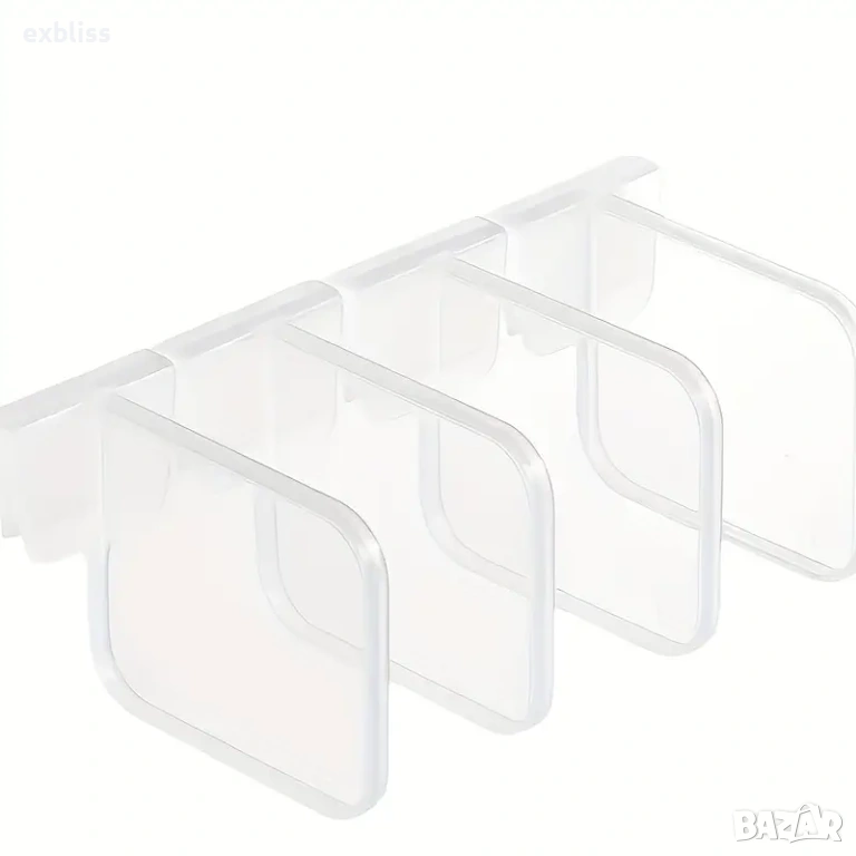 Тези практични клипсове се поставят за секунди и ви позволяват да създадете персонализирани отделения за вашите продукти. С тях лесно ще сортирате всичко – от подправки и сосове до кутии и пакети, като предотвратявате разместването им.