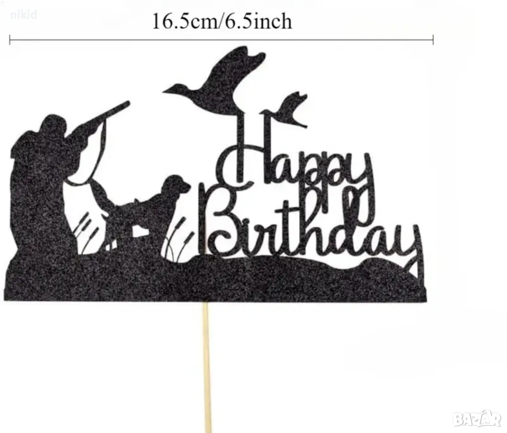 Happy Birthday Ловец ловджия с куче гъски ловен лов черен картонен топер украса за торта рожден ден → Обява 53387612