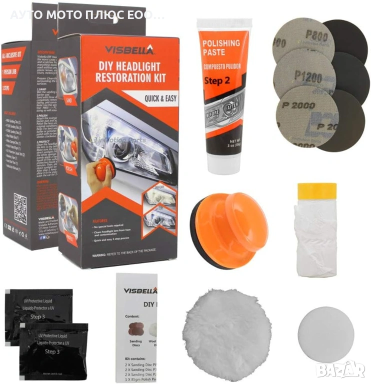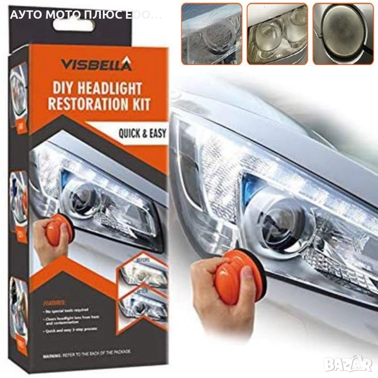 Комплектът е проектиран да възстанови яснотата и да подобри работата на фаровете на автомобила, което е по-лесно и по-евтино от подмяната им.
