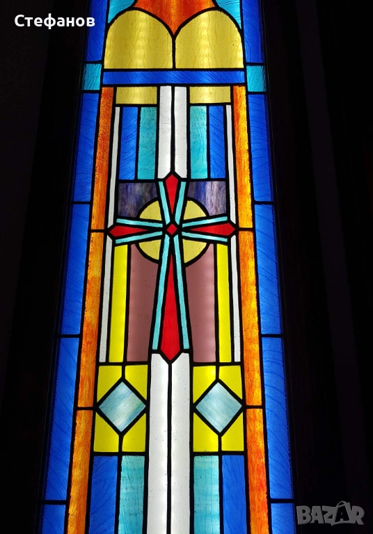 „жив“ източник на светлина и цвят. Витражното пано е със солидна и същевременно
