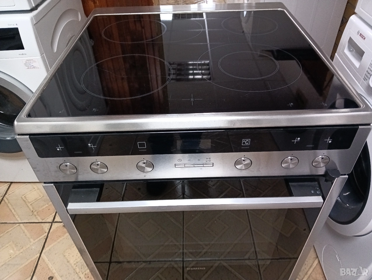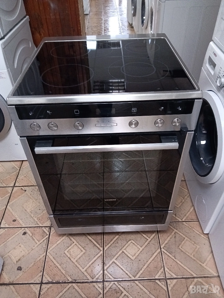 Иноксова свободно стояща печка с керамичен плот Сименс Siemens с две години гаранция!