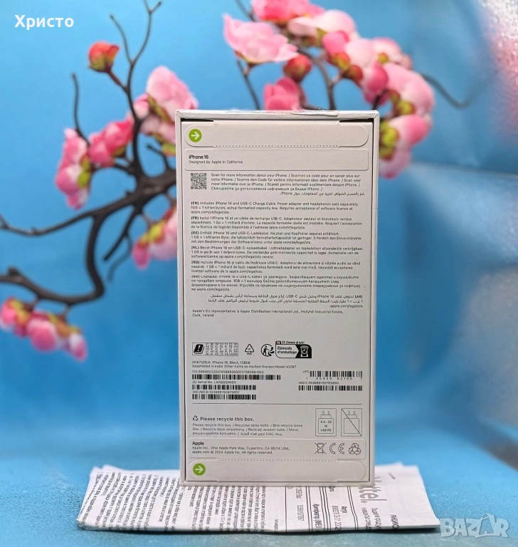 Продавам чисто нов Apple iPhone 16 128GB – неразпечатан и неактивиран, в оригинална запечатана кутия. Телефонът е закупен на 29 Януари и е с 36 месеца гаранция към Yettel. Работи с всички оператори. Никога не е използван и не е отварян – купувачът ще бъде първият, който ще го активира. Към телефона подарявам оригинален Apple адаптер за зареждане, за да бъде комплектът напълно пълен. Без бартери!!!
