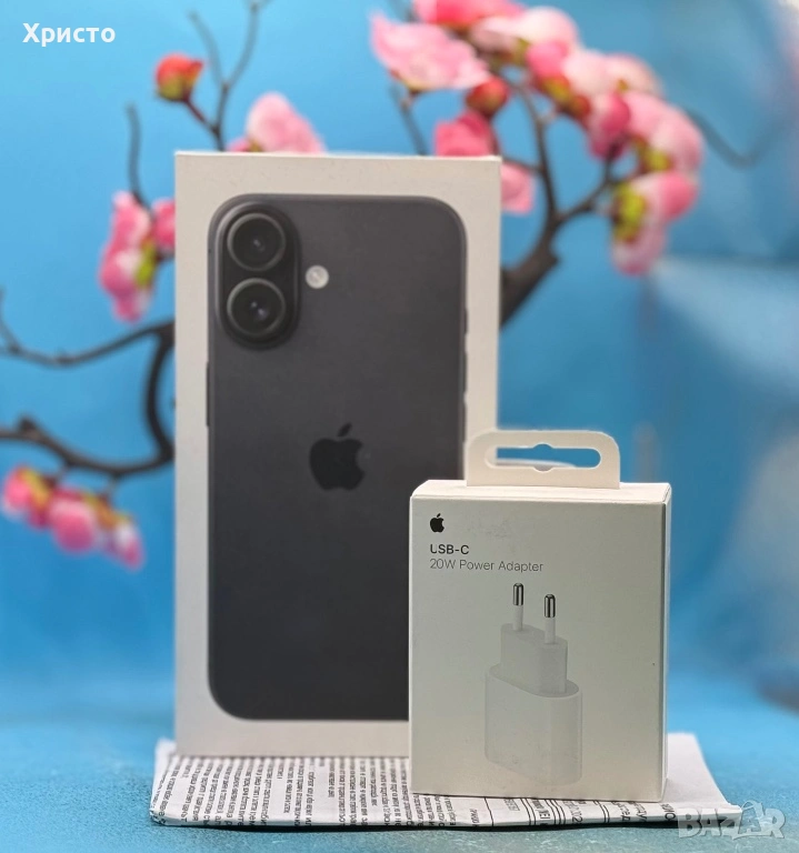 НОВ!!! Apple iPhone 16, 128GB, 5G, Black + оригинален адаптер Appe