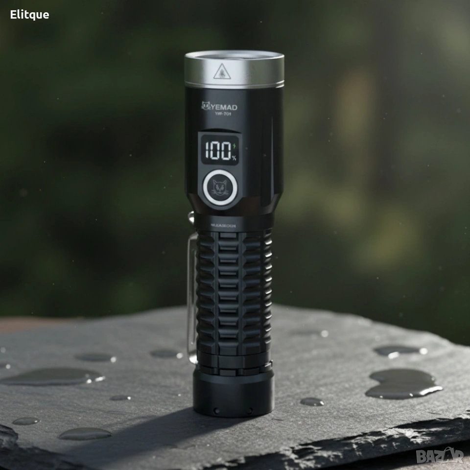 LED фенер YEMAO YM-F701 със зелен лазер - USB и дисплей
