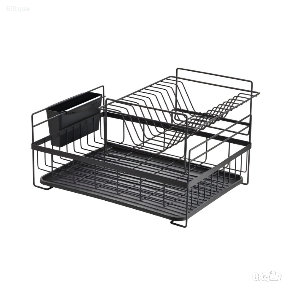 Материал: Метал с висококачествено покритие и пластмасова тава Брой нива: 2 (двуетажна организация на пространството) Размери: Височина 27.3 cm, Ширина 45 cm, Дълбочина 32.5 cm Цвят: Черен или Бежов Аксесоари: Сваляща се поставка за прибори, подвижна тава за лесно почистване Устойчивост: Стабилна конструкция, подходяща за ежедневно ползване