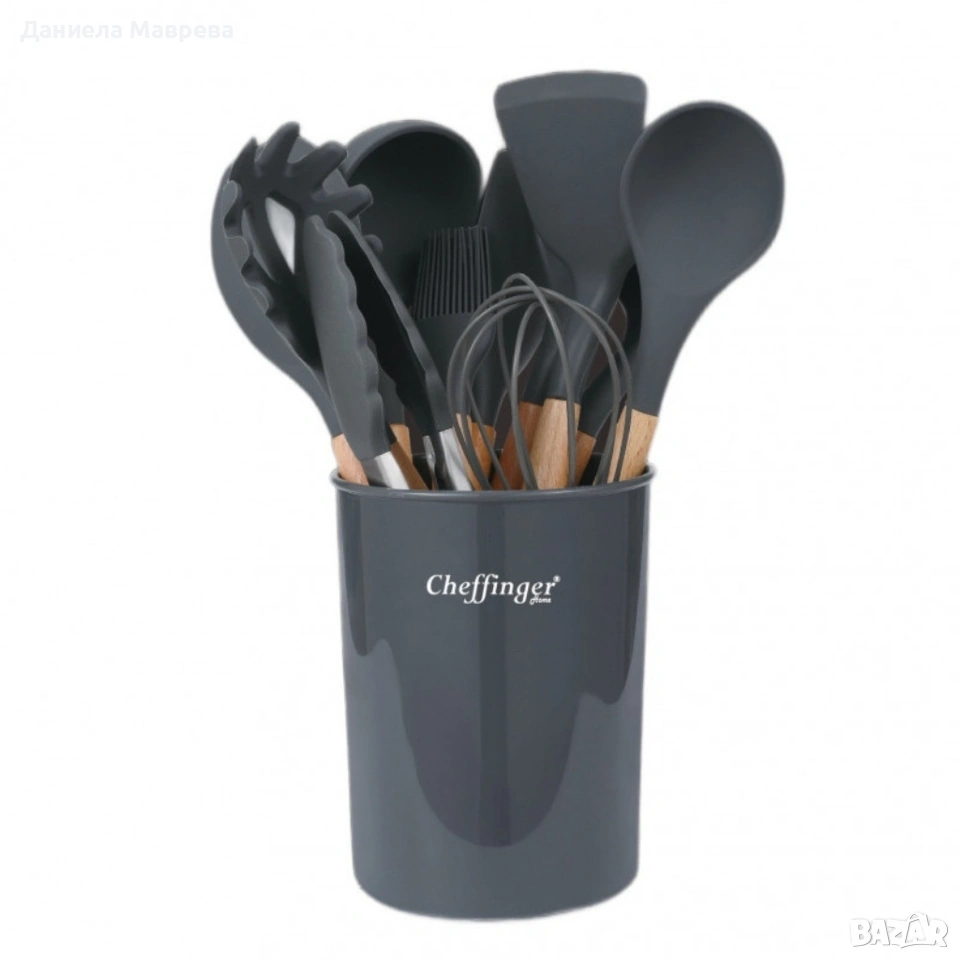Включени прибори: плътна шпатула, перфорирана шпатула, черпак, плътна лъжица, решетъчна лъжица, прибор за спагети, кръгла шпатула, шпатула за печене, четка за мазане, тел за разбиване, кухненска щипка;