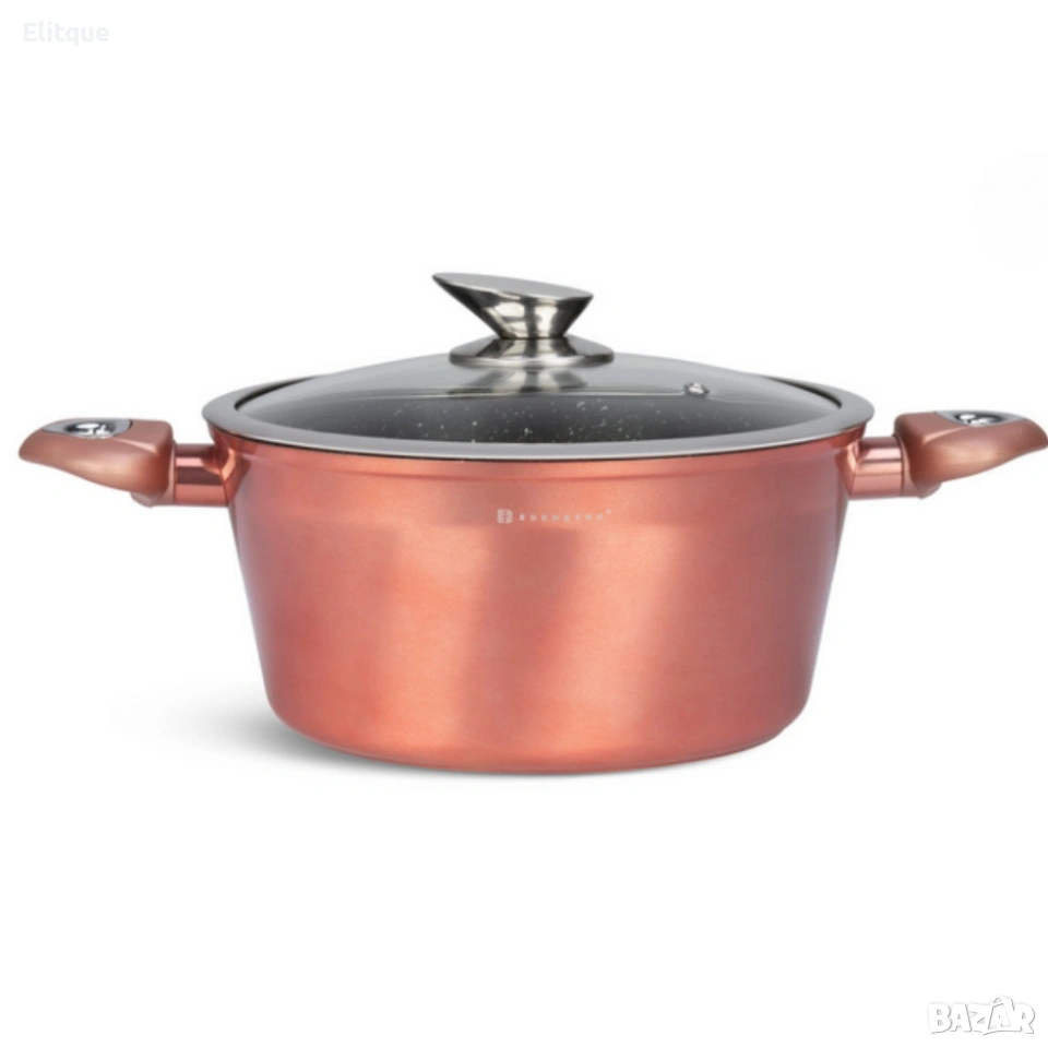 Технически характеристики на Комплект съдове за готвене EDENBERG EB-5625 - всичко необходимо в кухнята Комплект: 15 части (тенджери, тигани, капаци, 3 кухненски прибора, 2 бакелитни подложки) Материал: лят алуминий Вътрешно покритие: незалепващо с мраморен ефект Капаци: стъклени с метален ринг Дръжки: ергономични, топлоизолиращи Съвместимост: газ, електрическа плоча, керамичен котлон (проверете за индукция според модела) Размери и вместимости: тенджера 20 × 10,5 см (2,75 л), тенджера 24 × 12 см (4,65 л), тенджера 28 × 12,5 см (6,66 л), тенджера 16 × 8,5 см (1,53 л), дълбок тиган 24 × 6,5 см (2,3 л), тиган 28 × 5,4 см (2,7 л) Допълнителни аксесоари: 2 бакелитни подложки, 3 броя прибори за готвене Производител: EDENBERG