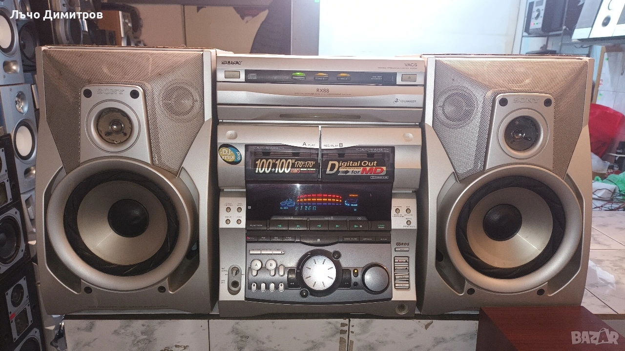 Системата работи на аух и радио,сд-то не се отваря, дековете не съм ги тествал, реално може да се използва като усилвател, да се свърже към телевизор лаптоп телефон и др, тонколоните са работещи с козметични забележки по пищиялките, както и кутите на тонколоните са се надули от влага ,но няма сцепено по тях,цената е съобразена с това,предлагам и блутут устройства цена на брой 30лв,Бърза реакция при интерес от Ваша страна, изпращам с Еконт и Спиди с опция тест и преглед, също така ще бъдат и опаковани от мен лично, за повече информация на лично.