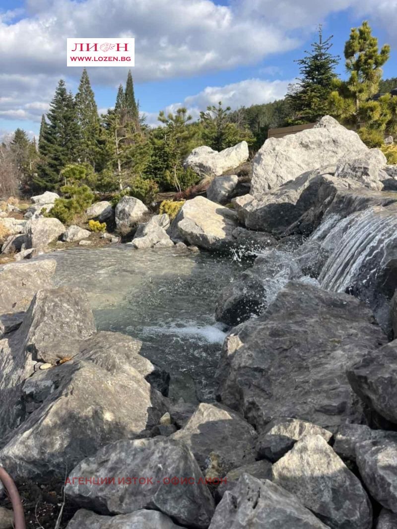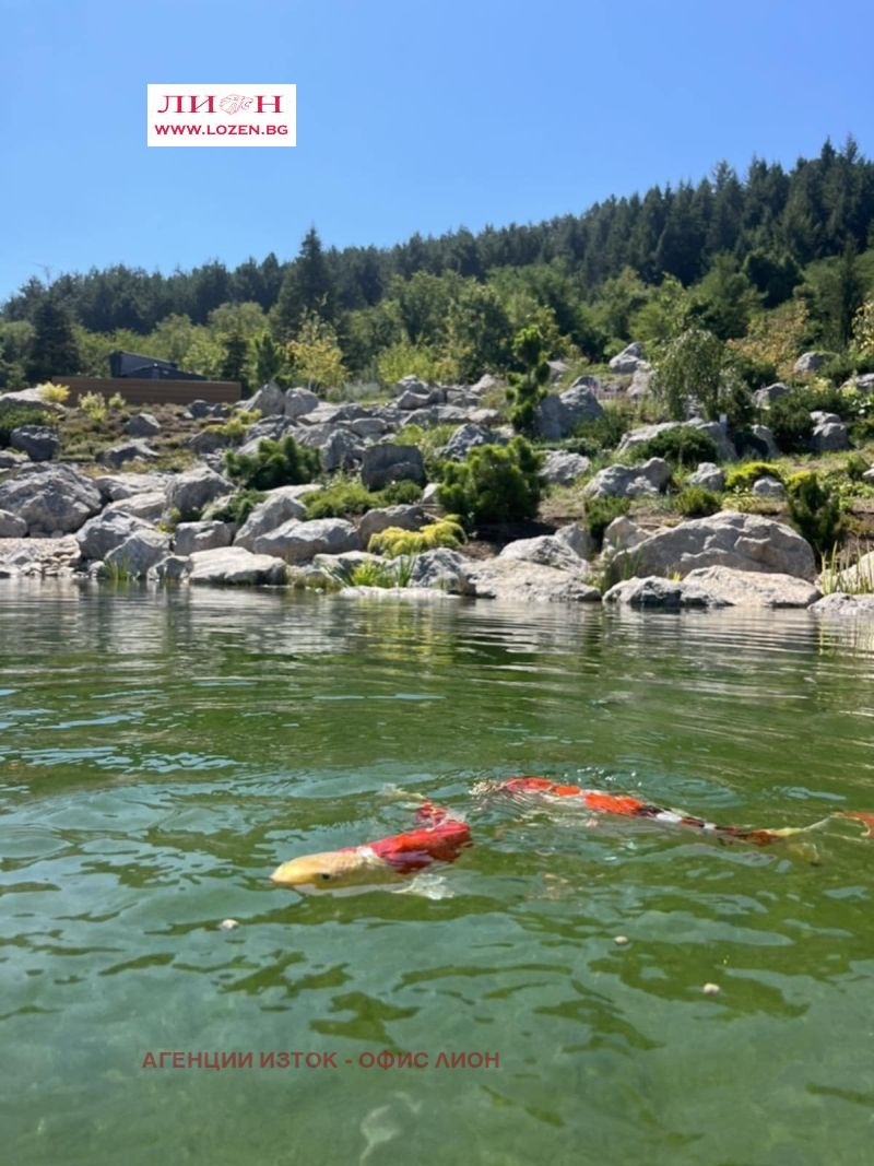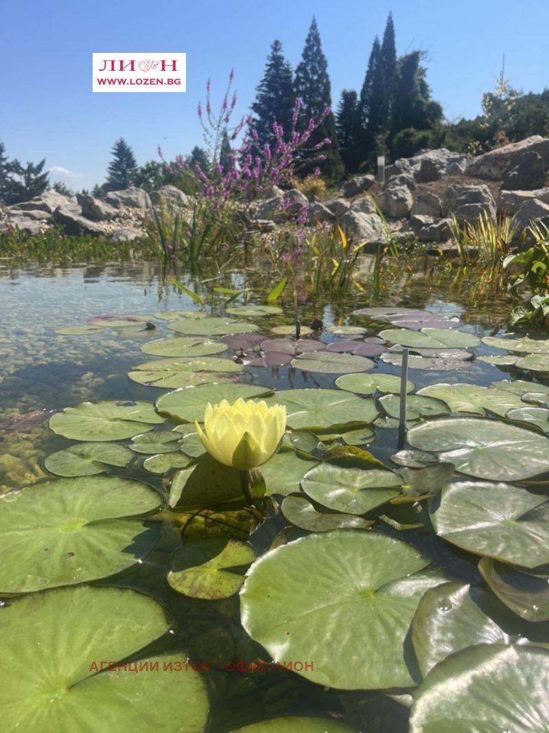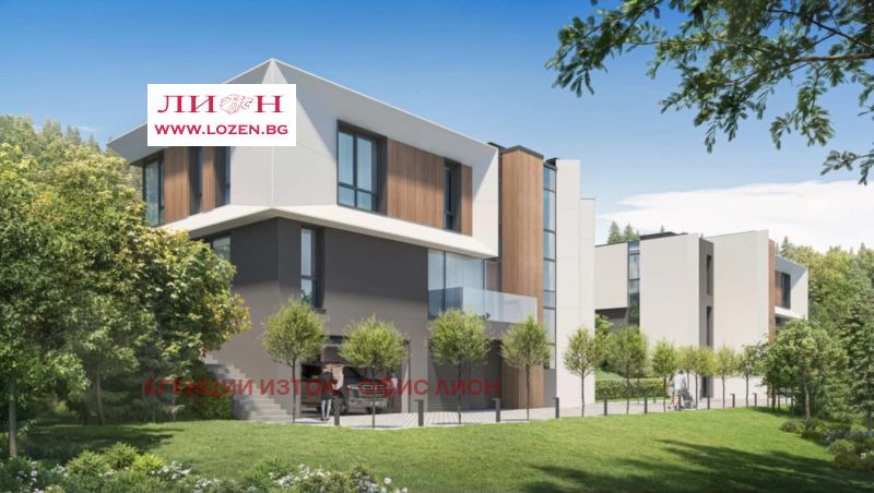 Продава се ПРЕКРАСНА нова къща със РЗП 482 м2 и обособен двор от 800 кв.м., разположена сред професионално аранжирана паркова среда от 5 декара, вълшебно езеро с костенурки и екзотични рибки, малка река, водопад и обособен кът за релакс с джакузи. Разположението в полите на Лозенската планина, гората, чистият въздух и прекрасната гледка към Стара планина предразполага към пълно разпускане от шума на големия град, а със своята близост и много добра свързаност с градския транспорт, включително и връзка със метро, предлага бързо предвижване до градската зона. Имотът е част от затворен комплекс, състоящ се от три самостоятелни къщи, всяка със собствен двор и достъп до общите зелени площи.