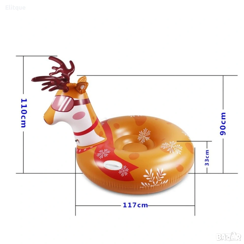 Надуваема шейна елен с удобни дръжки, за зима и лято / Материал: PVC; Дебелина: 0,6мм; Размери: Височина: 90 см, Височина с главата на елена: 110 см, Ширина: 117 см, Дебелина: 33 см;