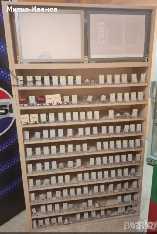 Продавам от затворен магазин за алкохол, цигари и захарни изделия комплект стила и и щандове → Обява 53389598