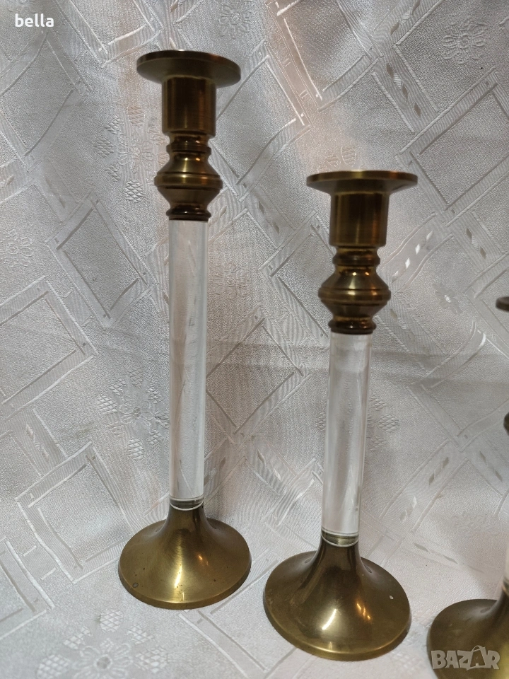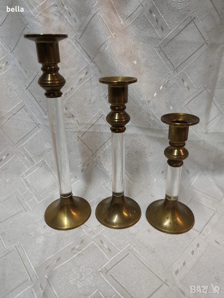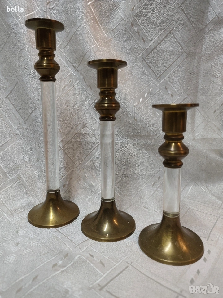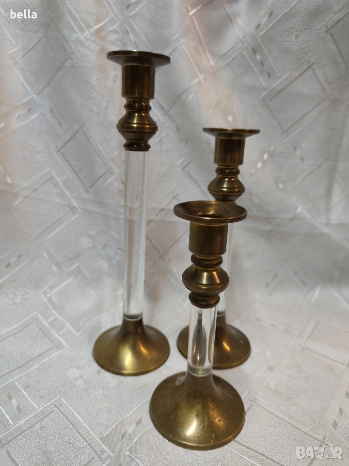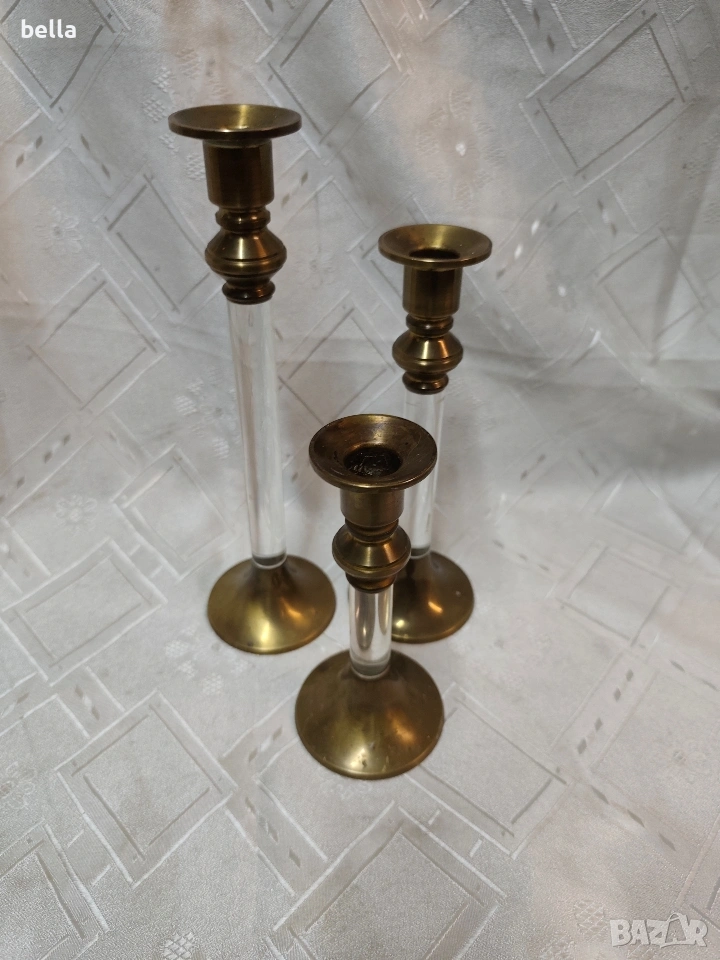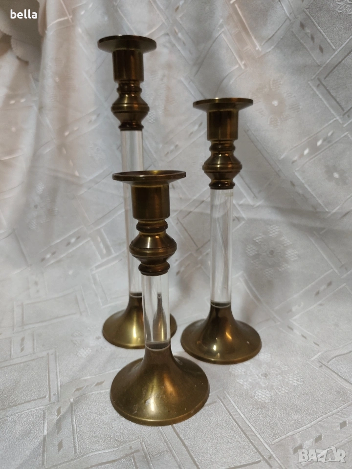 Елегантен комплект винтидж бронзови свещници (3 бр.) в стил Hollywood Regency. → Обява 53389830