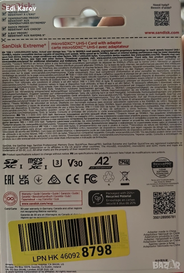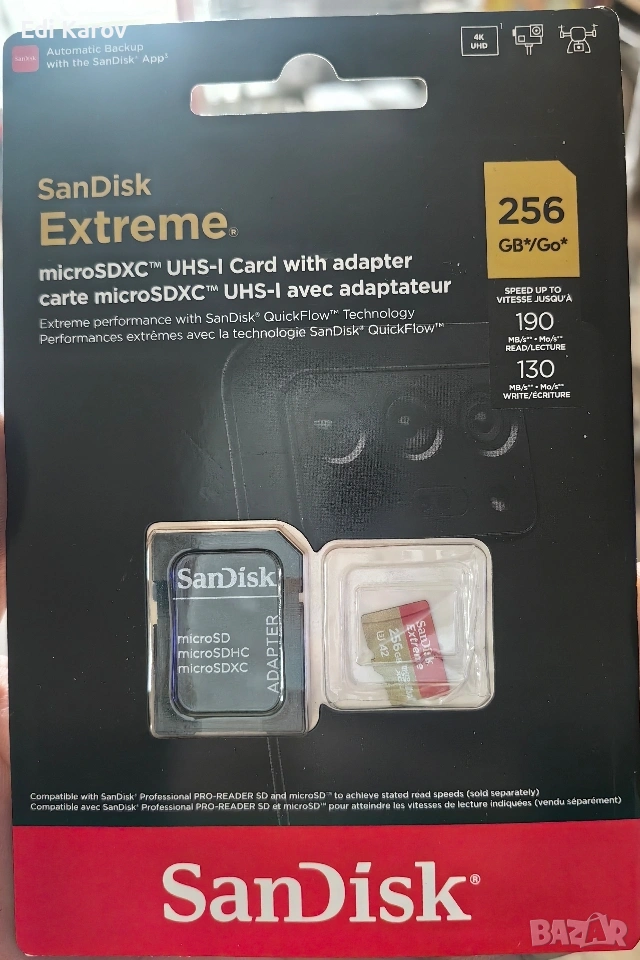SanDisk Extreme microSDXC 256GB + SD Adapter 190MB/s & 130MB/s C10 V30 UHS-I U3 , снимка 1 - Друга електроника - 53389980 SanDisk Extreme microSDXC 256GB + SD Adapter 190MB/s & 130MB/s C10 V30 UHS-I U3 , снимка 2 - Друга електроника - 53389980 1/2