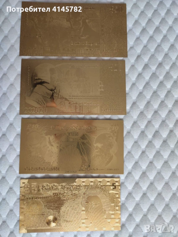 Лот 4 бр златни банкноти/златна банкнота - лира/паунд → Обява 53390066