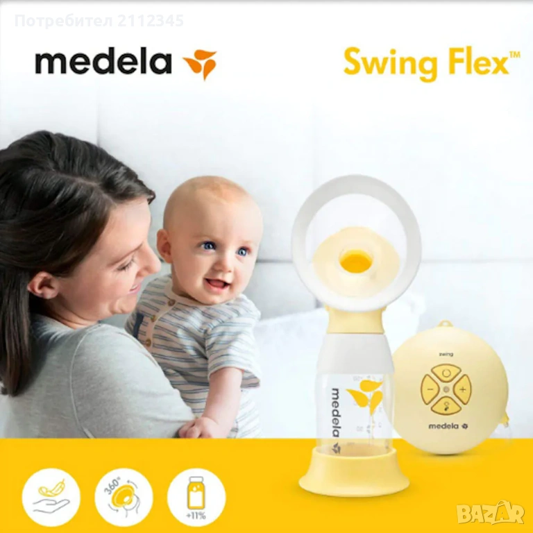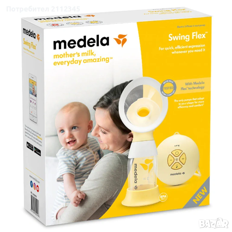 • Компактна и лека - събира се в чантата ви и може да работи и с батерии ( има ситуации, при които кърменето е трудно, например когато бебето не може добре да засуче зърното, инфекция на гърдата, ригади и т.н. Електрическата помпа за кърма Medels Swing Flex™ ще ви помогне да решите тези проблеми и да осигурите кърма за вашето бебе).